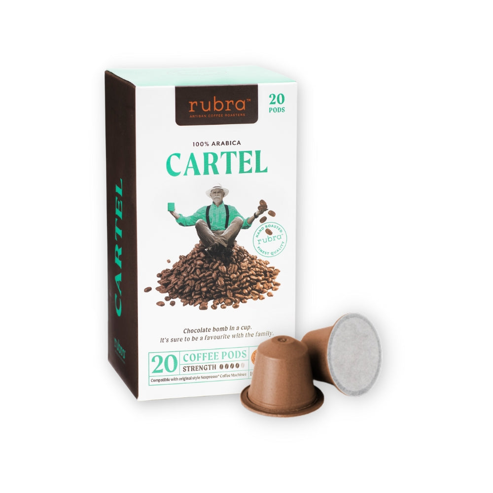 Our award-winning Cartel blend packed into coffee pods (compatible with original style Nespresso®* coffee machines). Each pod contains our award-winning coffee and is blended, roasted and packed in Australia from quality imported beans.