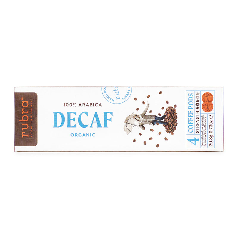Our award-winning Organic Decaf blend packed into coffee pods (compatible with original style Nespresso®* coffee machines). Each capsule contains our award-winning coffee and is blended, roasted and packed in Australia from quality imported beans.
