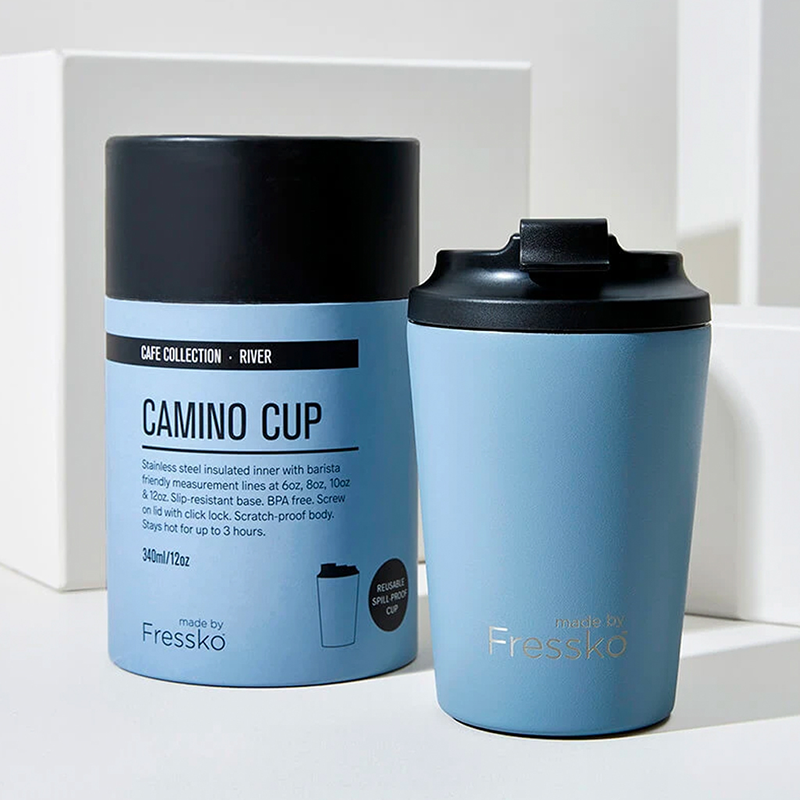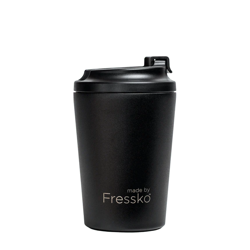 Available in 12oz, Fressko coffee cups are vacuum sealed, scratch-resistant, have a spill-proof, screw-in, easy to clean, no fuss, lockable lid and internal barista lines.